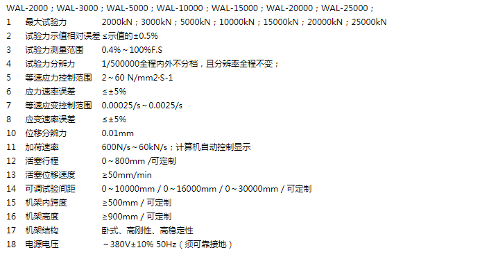 產品規格 WAL-2000KN;WAL-3000KN;WAL-5000KN;WAL-10000KN;WAL-15000KN;WAL-20000KN;WAL-25000KN;