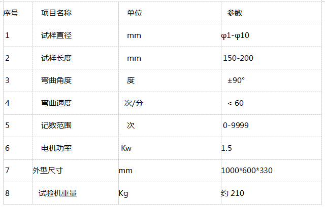 JWJ-10電動金屬線材反復(fù)彎曲試驗機(jī)的主要參數(shù)符合GB/T238-2013《金屬材料線材反復(fù)彎曲試驗方法》中有關(guān)規(guī)定,廣泛應(yīng)用于鋼絲廠、預(yù)應(yīng)力鋼絲廠、建工建材、公路交通、廠礦企業(yè)、科研院所、質(zhì)檢單位檢驗鋼絲、鋼筋等金屬線材的彎曲性能。